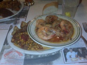 I know the quality of this image stinks, but I promise they are amazing! If you can get over the whole ripping-their-heads and shells off-thing, then you are in for a treat! The barbeque sauce is gluten free (I asked a lot of questions), and once you get down to the shrimp they are so fresh and moist and succulent you can’t stop eating. It’s super messy, but worth the effort. It comes with a side of potatoes and vegetables, but I had a suspicion that they were cooked in some sort of sausage/meat grease so I passed on those.