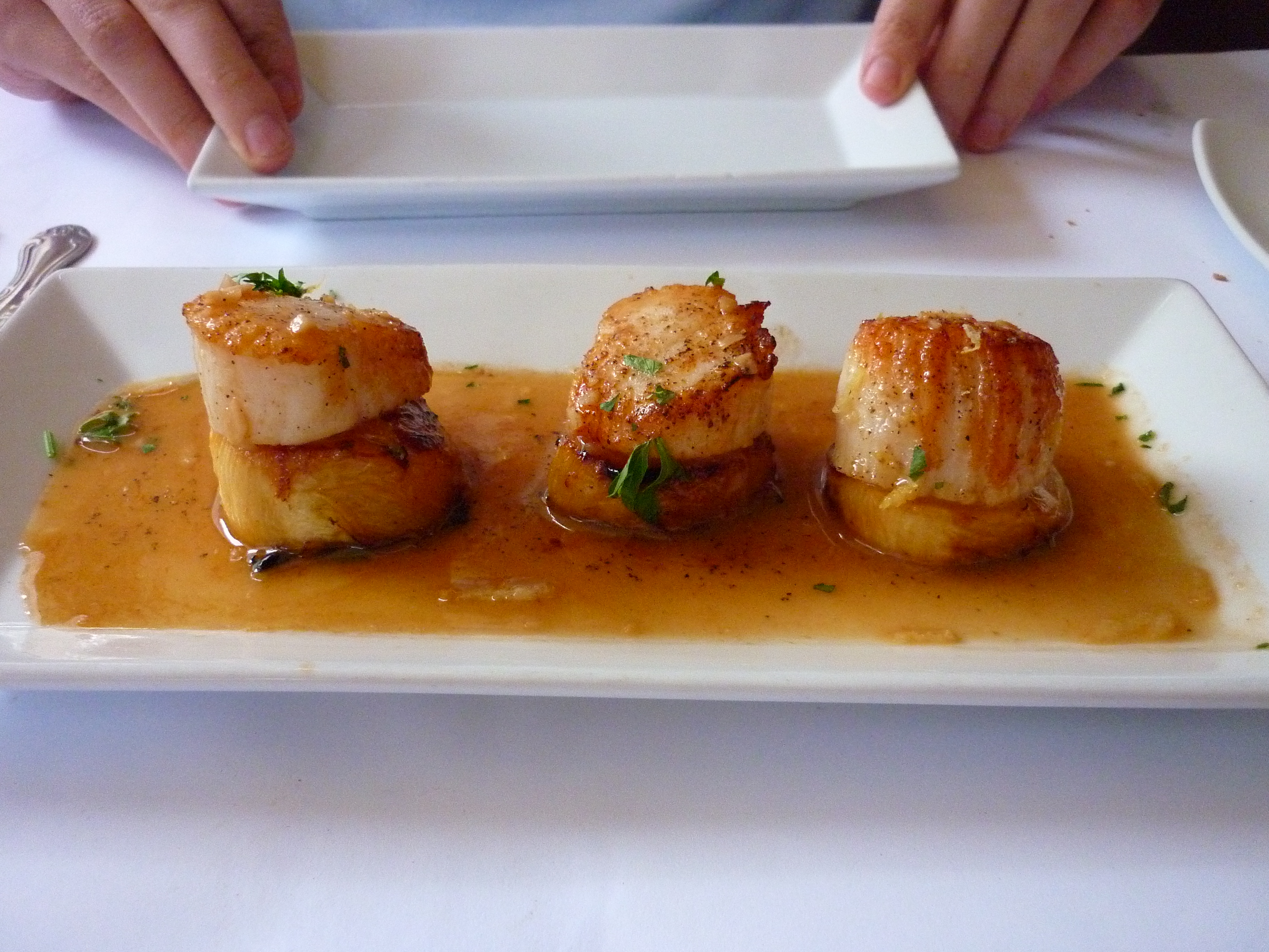 Nick and I split an appetizer of scallops with grilled pineapple: