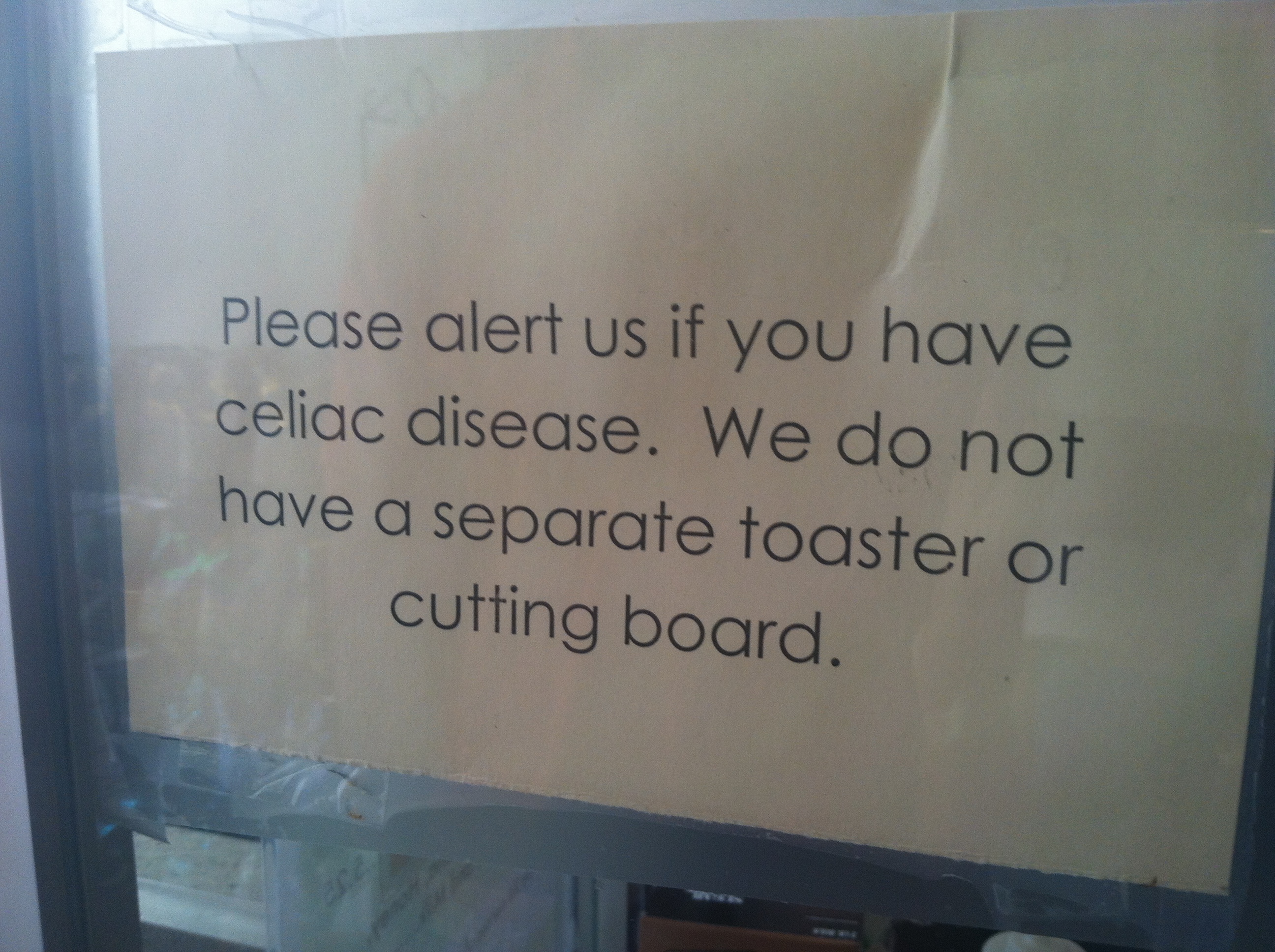 1. This sign at Vic’s Bagel Bar in NYC. Their gluten free bagels are seriously drool-worthy, and they are serious about preventing cross contamination for those of us with Celiac disease. Props to them!