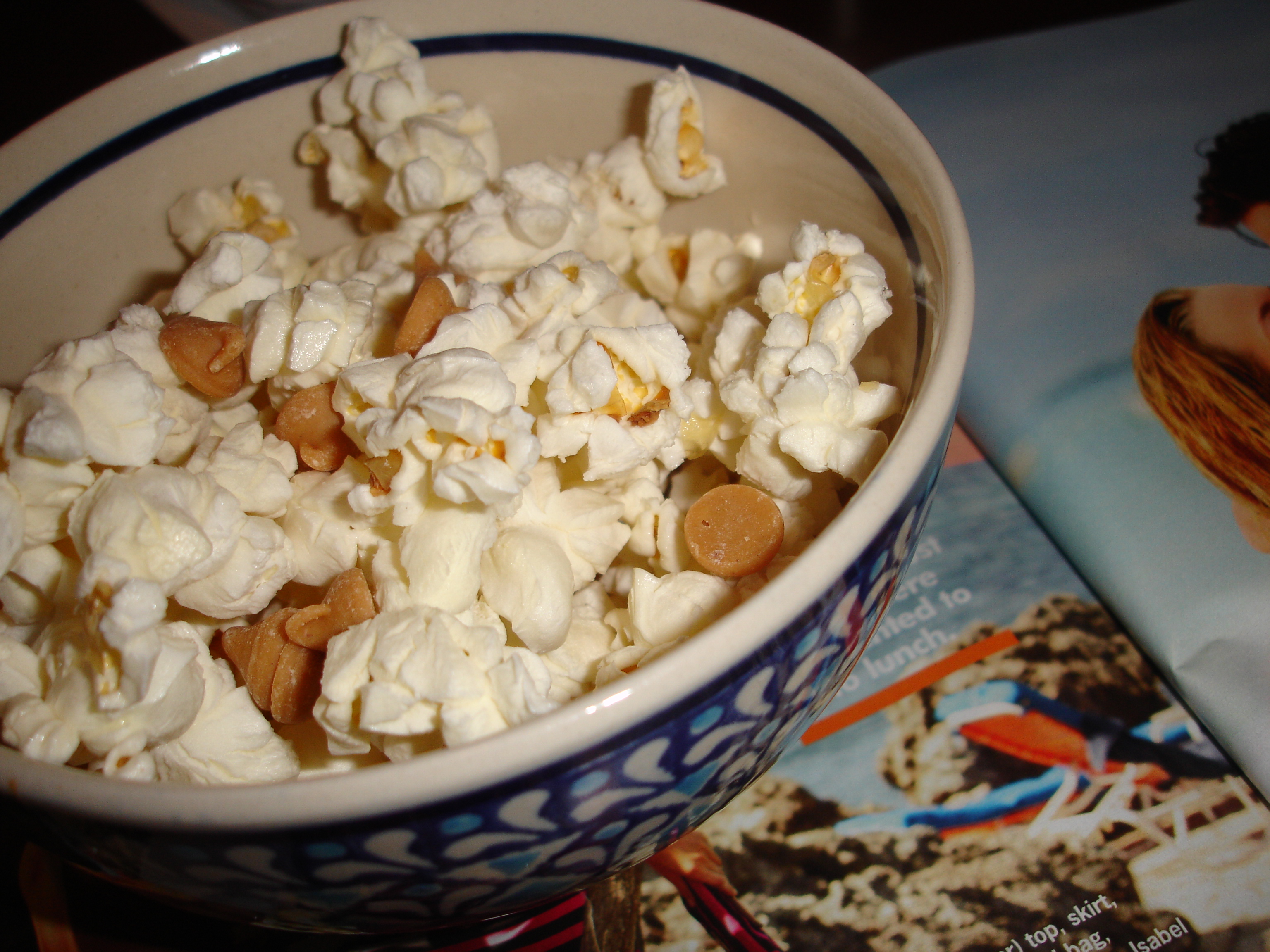 Although it may be hard to believe, sometimes I want something besides ice cream for dessert.  Tonight I pulled out the creativity and made some kettle corn from Orville Redenbacher, then topped it with Reese’s Peanut Butter Chips.