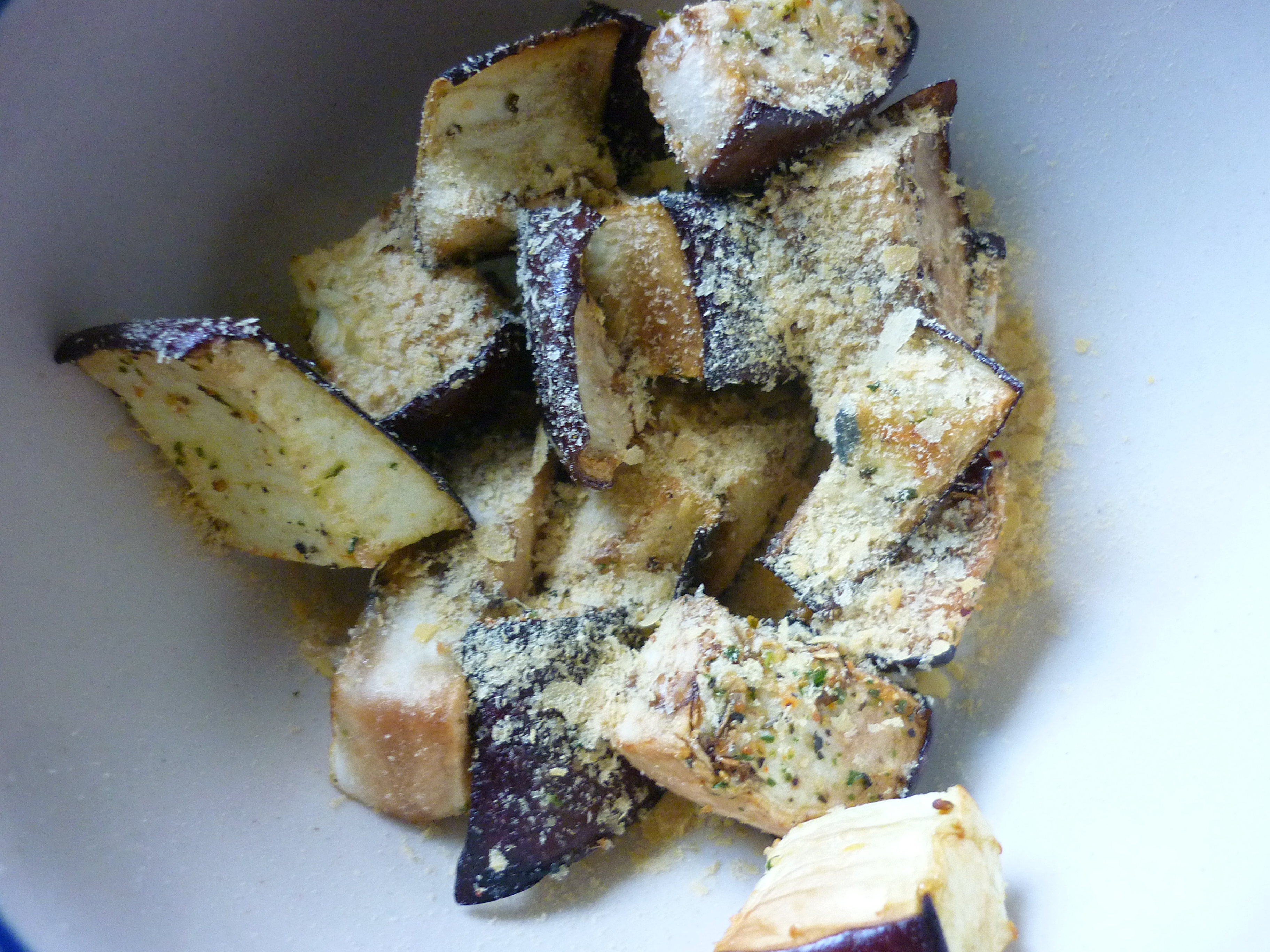 I used it to top some roasted eggplant and it tastes remarkably like parmesan cheese, only meltier and milder. Apparently it’s full of B vitamins and other goodforyou stuff, so I will definitely use it as a parm substitute again.