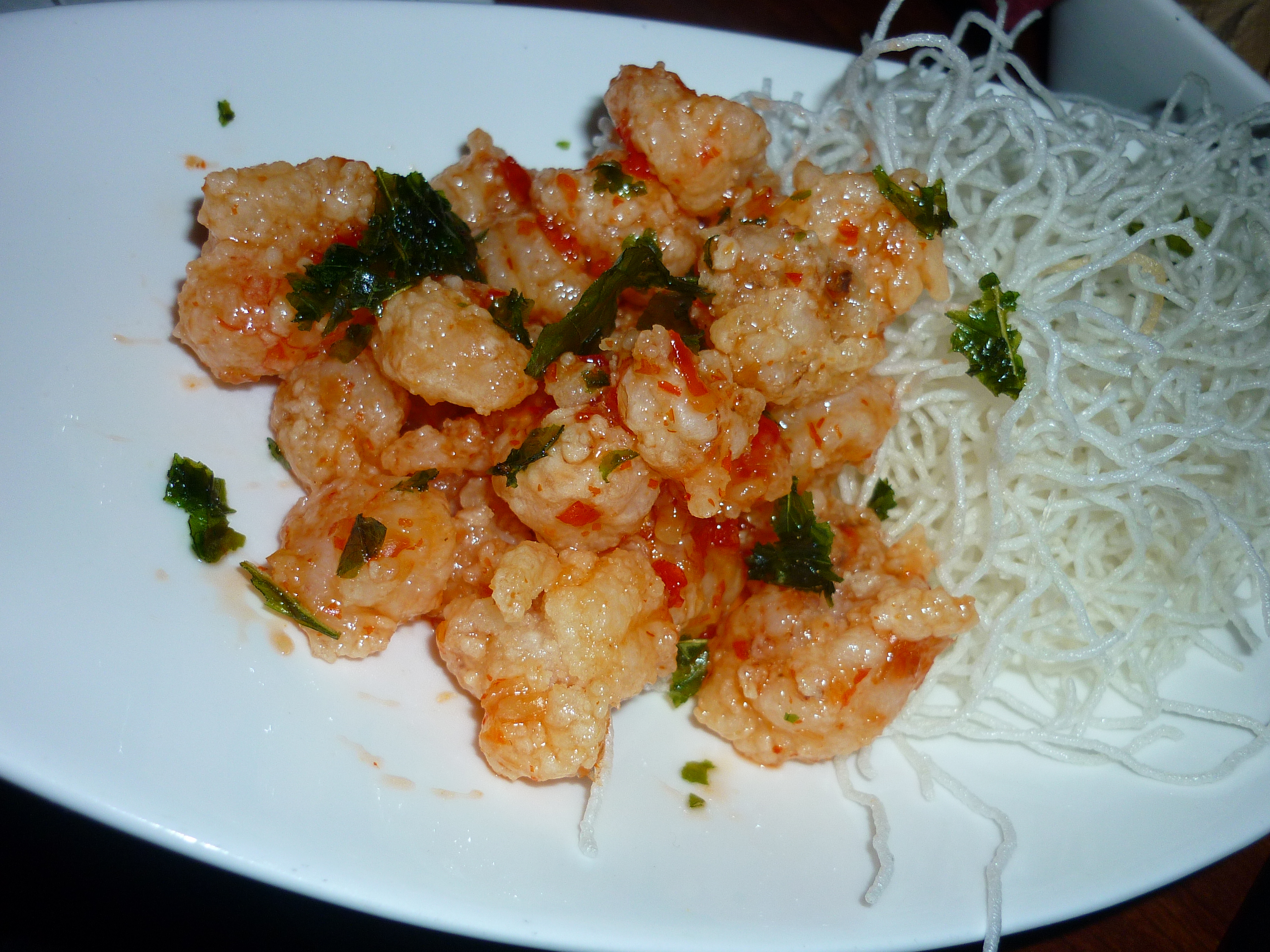 It’s greasy, chewy, and unique tasting. Basically it’s ground or shredded taro, mixed with tapioca starch, sugar, and water – then rolled into balls and deep fried. A recipe for them can be found here.